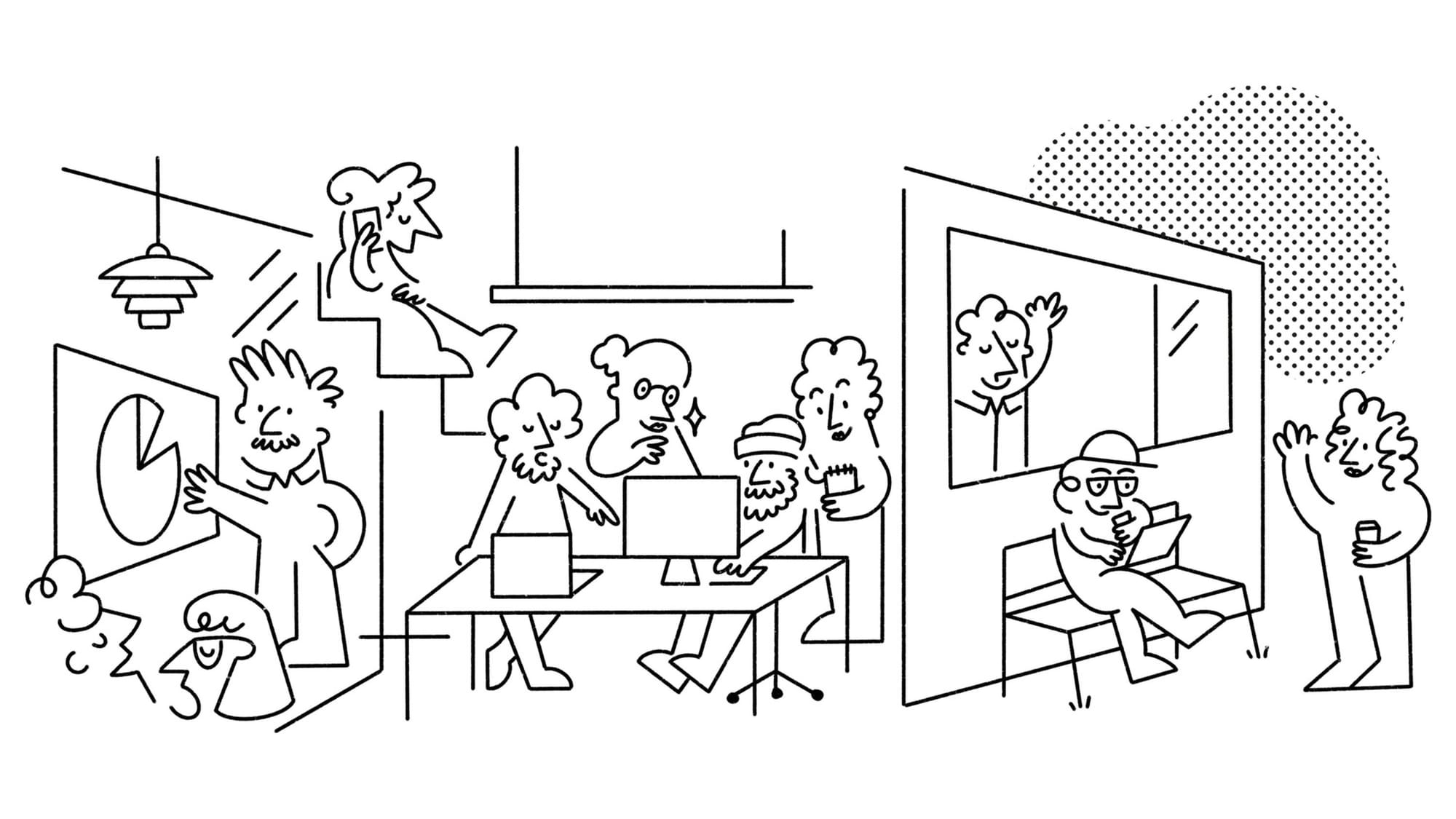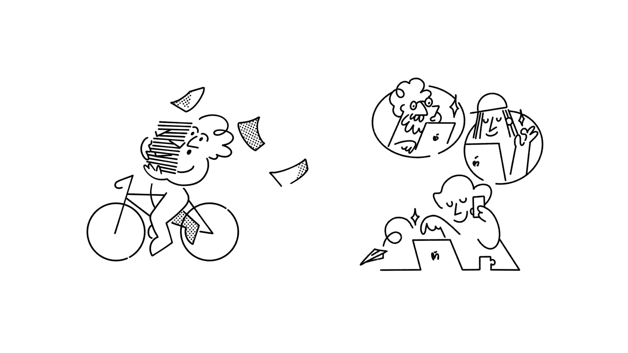 The clean, black-and-white, minimalist illustrations featuring a recurring character might not be groundbreaking, but they are always a visual delight and is versatile for various purposes like landing pages, merchandise, and packaging.