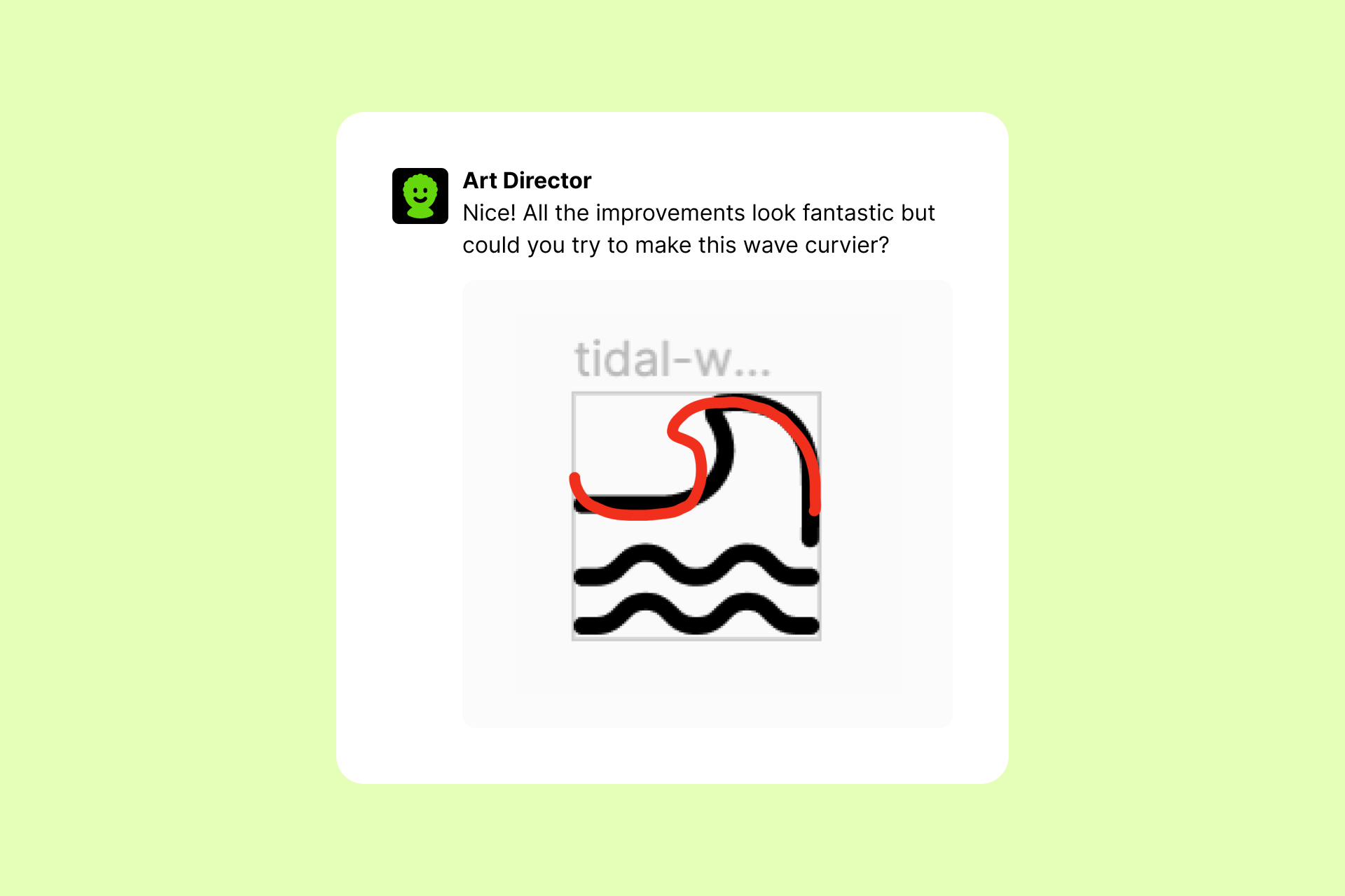 We use Figma to design all our icons, but Slack is the place where we give feedback. Why? Basically because we like all team members to have easy access to this process in one place, without having to jump from one file to another. This is how a smooth feedback session usually goes: