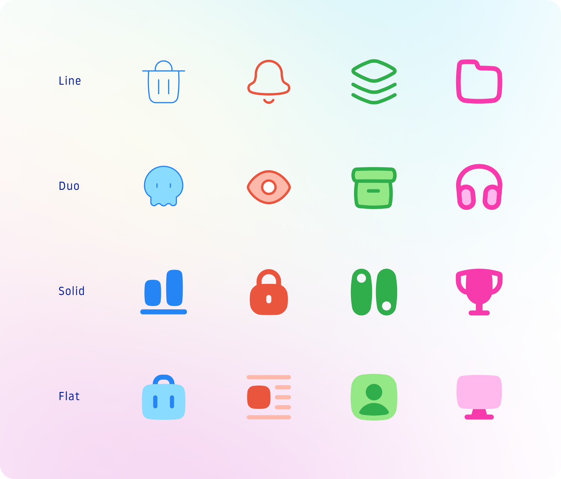 Color variations for Line, Duo, Solid and Flat