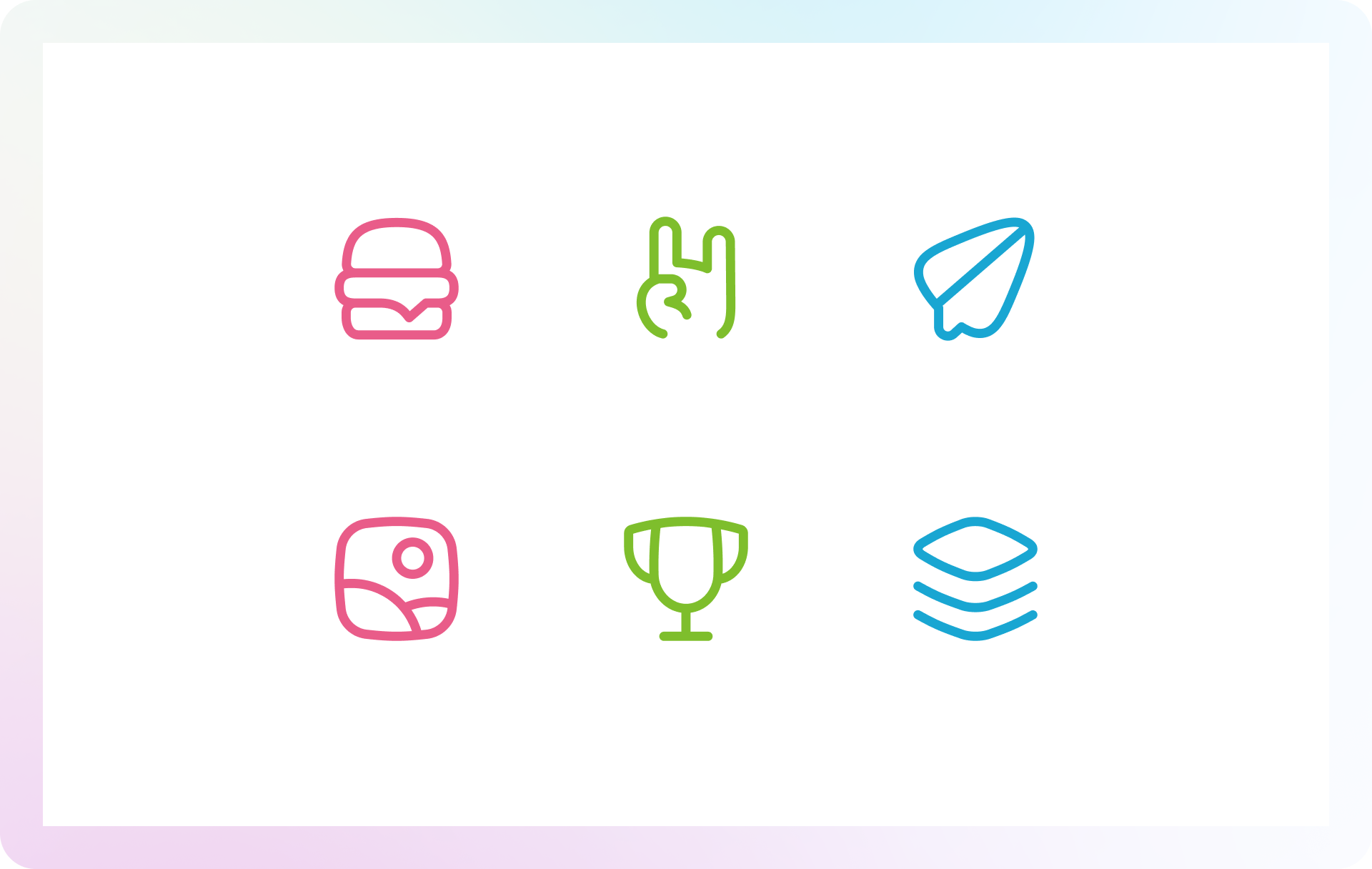 Curves have a calming and soothing effect on users, reminding them of the natural curves of landscapes or the lines of human bodies. We were inspired by nature to create these icons, they exude a sense of naturalness and friendliness.