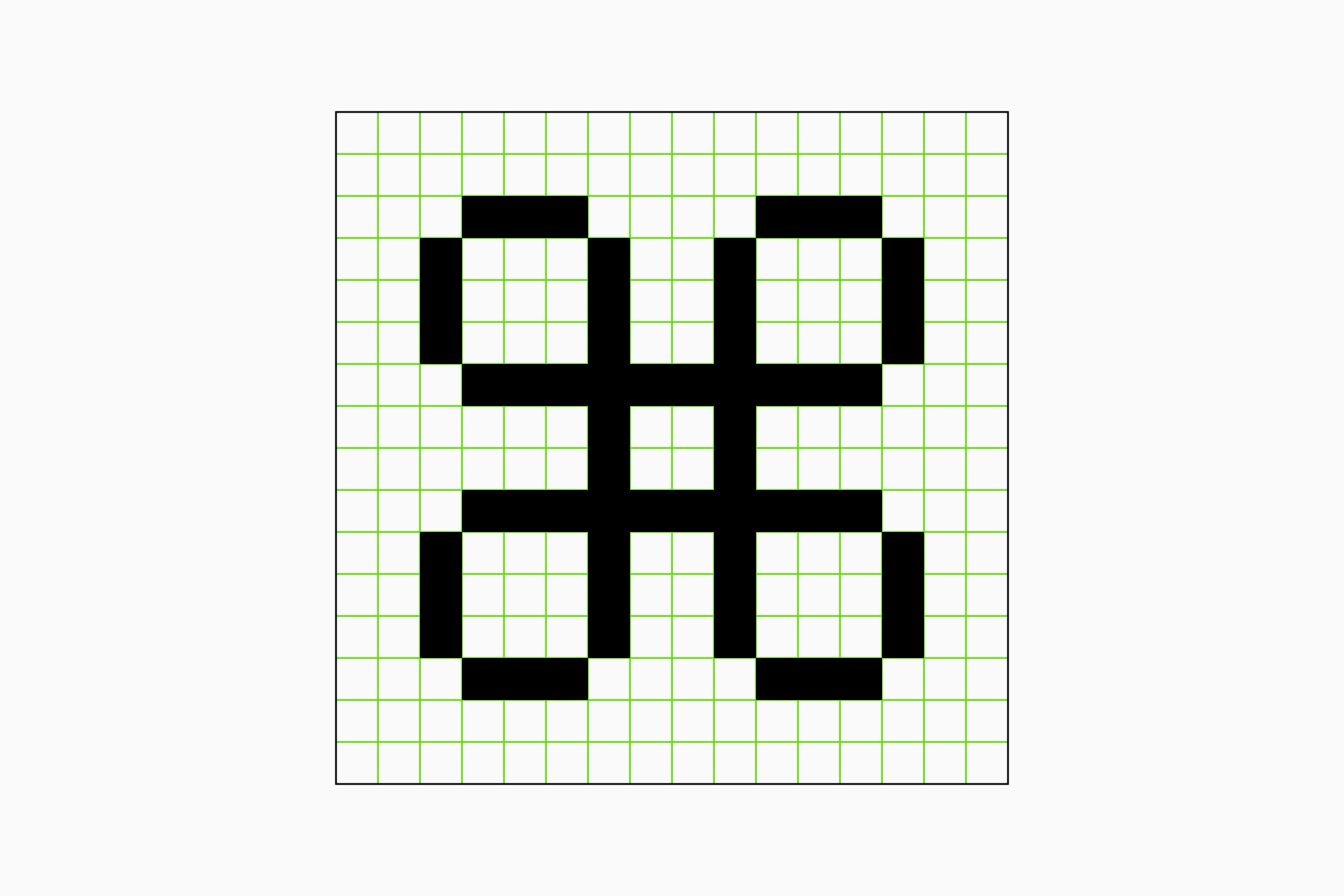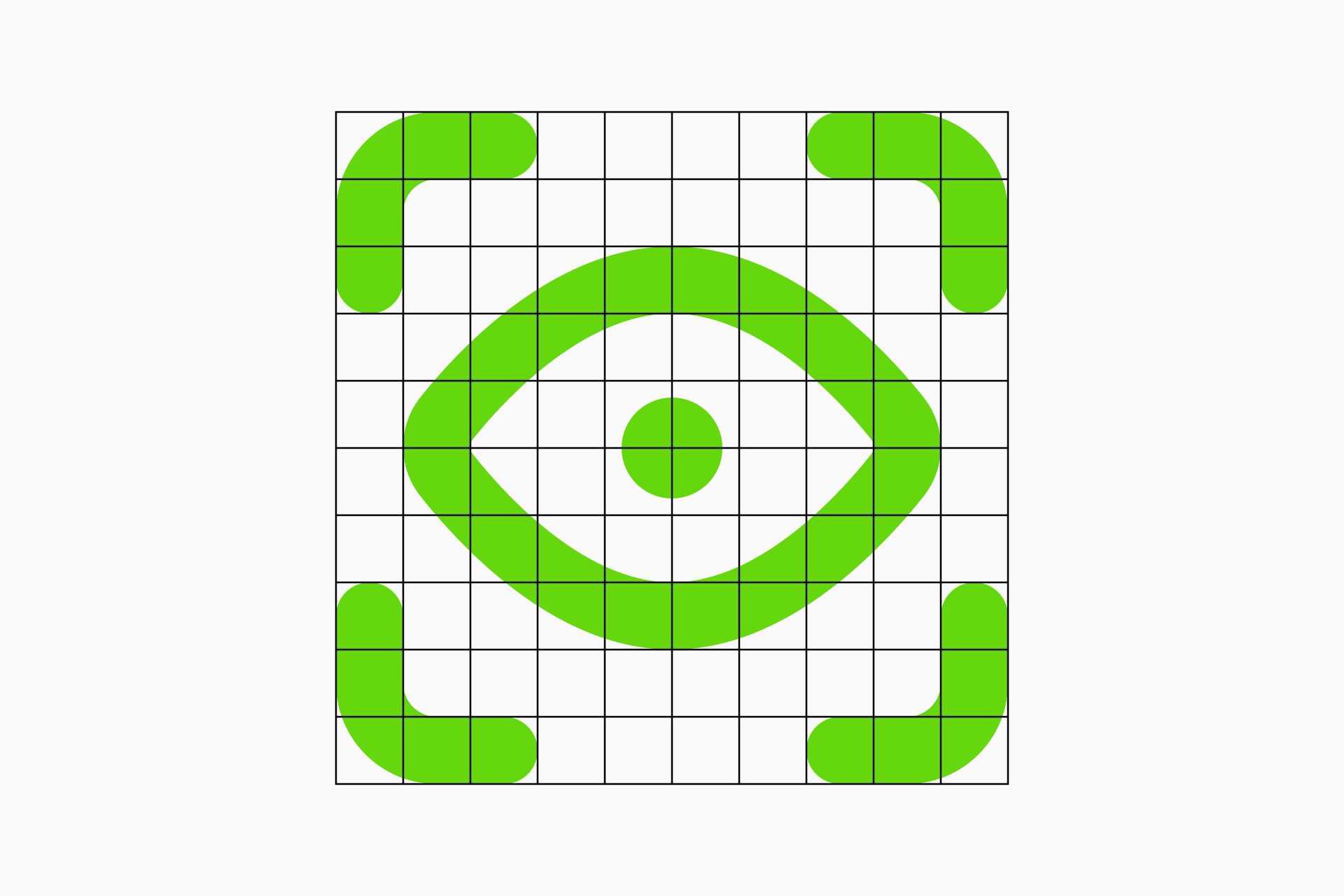 Primary grid (units). The primary grid is the basic structure that determines the overall layout and proportions of the icons, ensuring that each sign adheres to defined guidelines and contributing to the harmony across the set. The squares resulting from this division will be known as units.