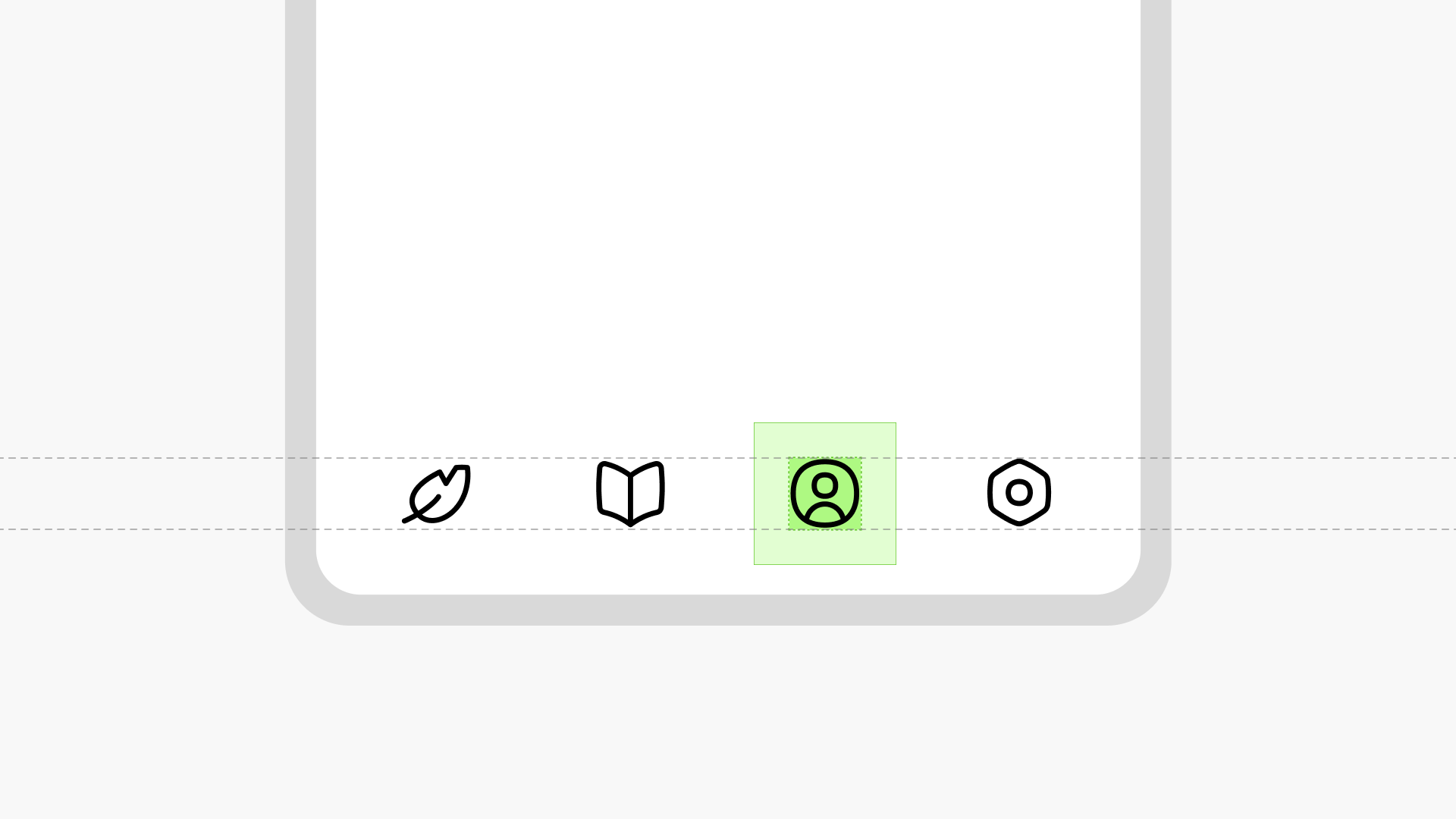 Similarly, don't place icons too close together. There should be spacing between icons for visual separation and ease of tapping on the touch targets. Adjacent icons without padding may appear cluttered and hard to parse.