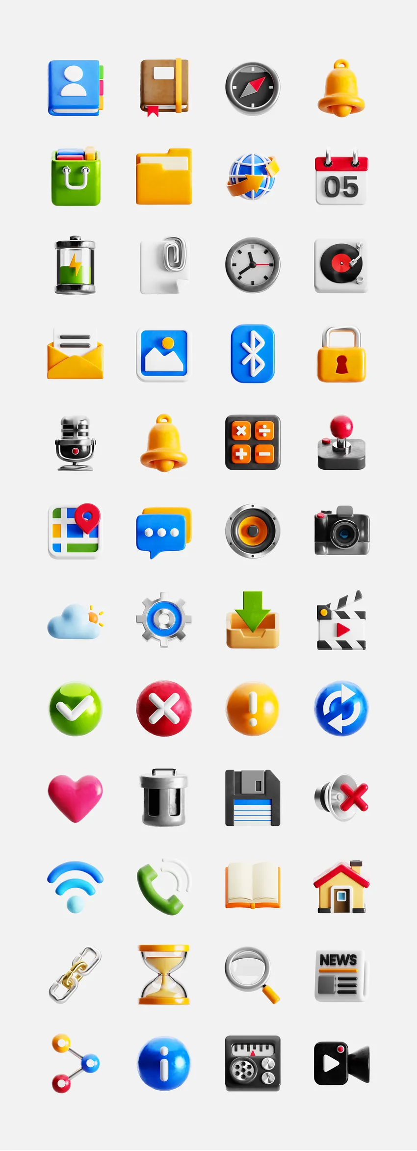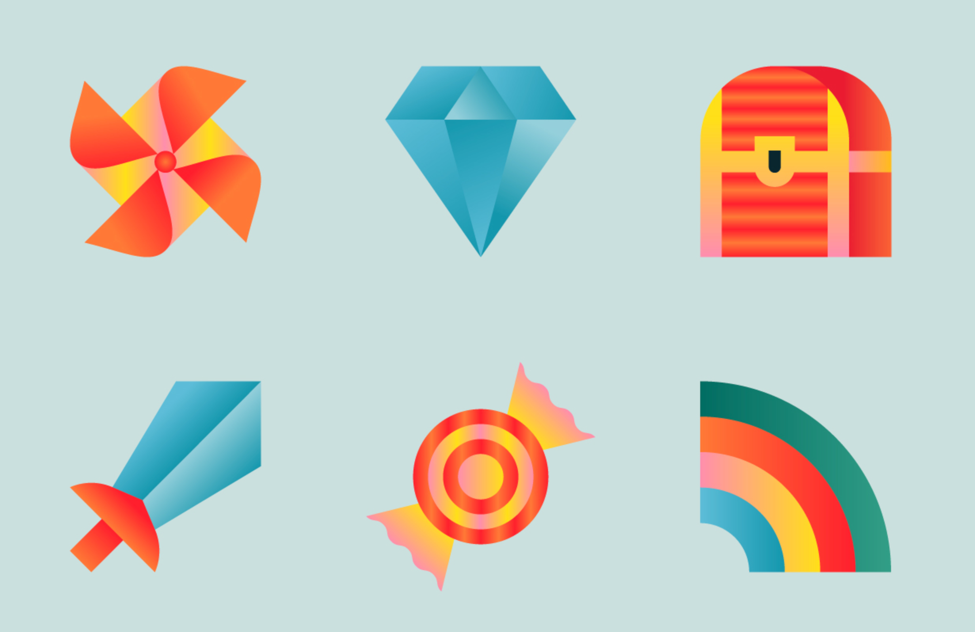 Shiny and colorful illustrative icons or "chromatic objects" as said by the creator, Léo Alexandre