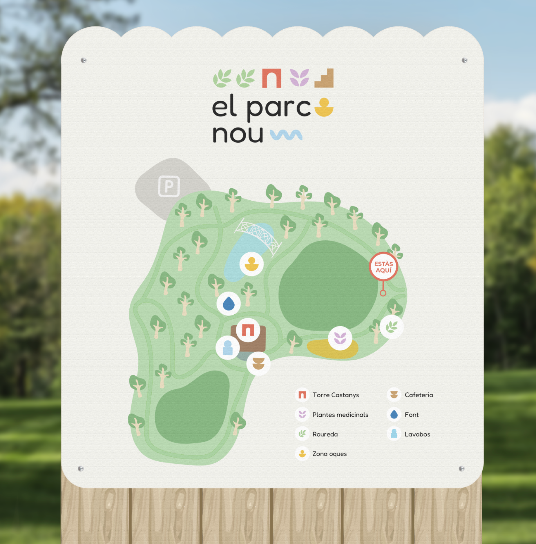 Colorful signage of El Parc Nou by Mireia Soler