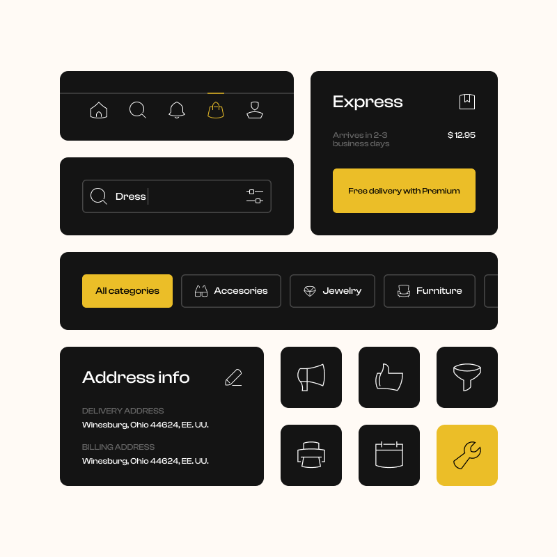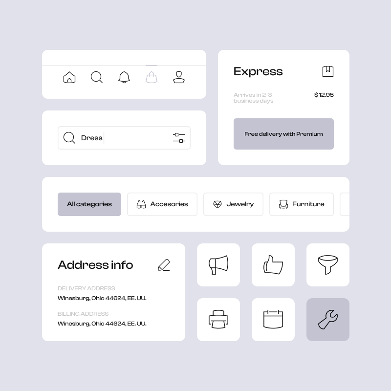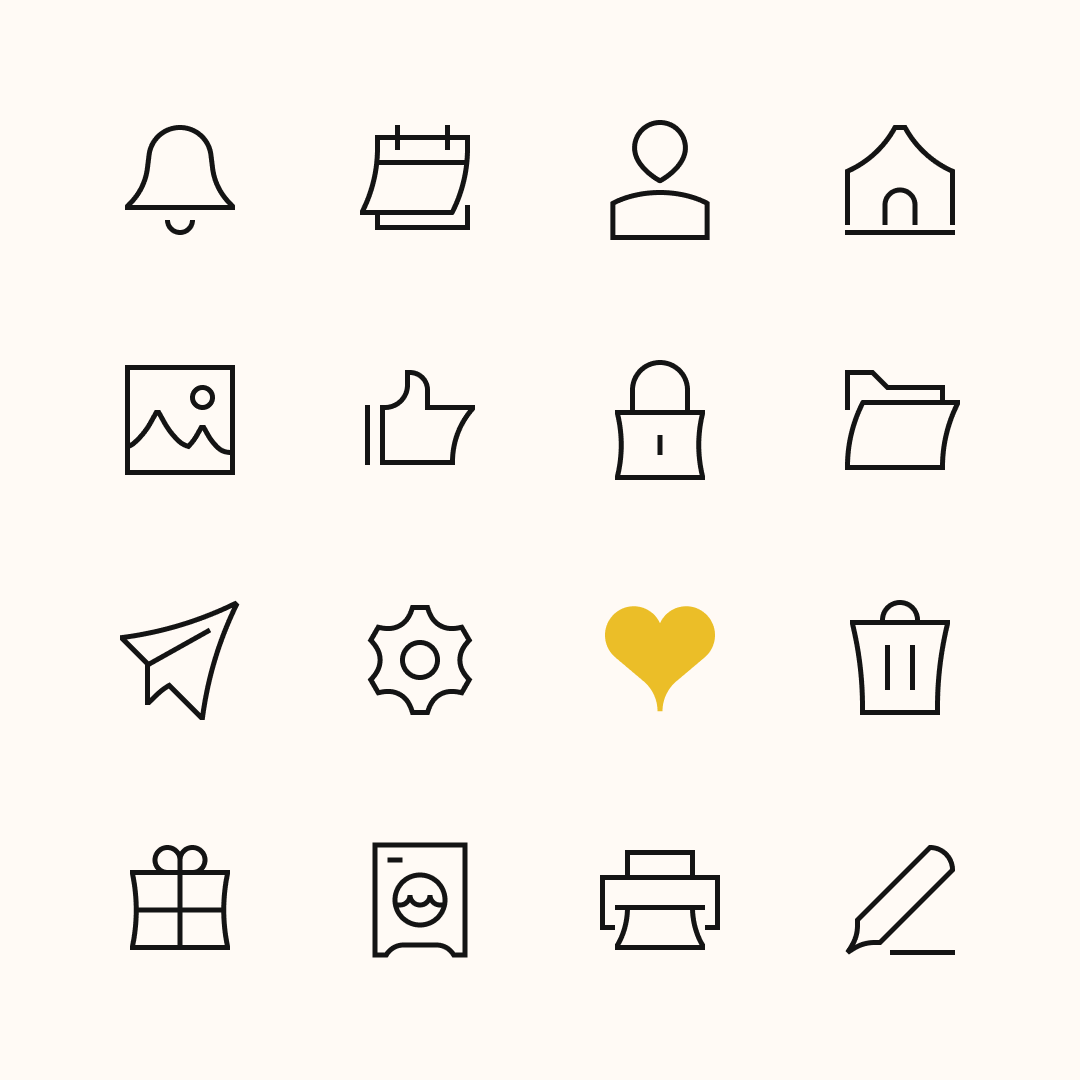 All these icons were built on a 24px grid with a 1px default stroke, which helped us achieve a more spacious and delicate look, easier to relate to luxury brands. But you can easily customize these icons by changing the colors or the stroke width, allowing you to create a lot of different outcomes with almost no effort.