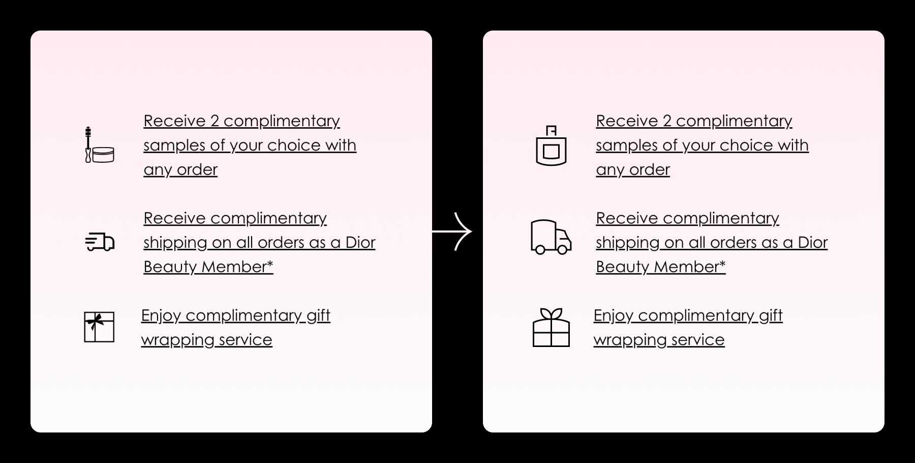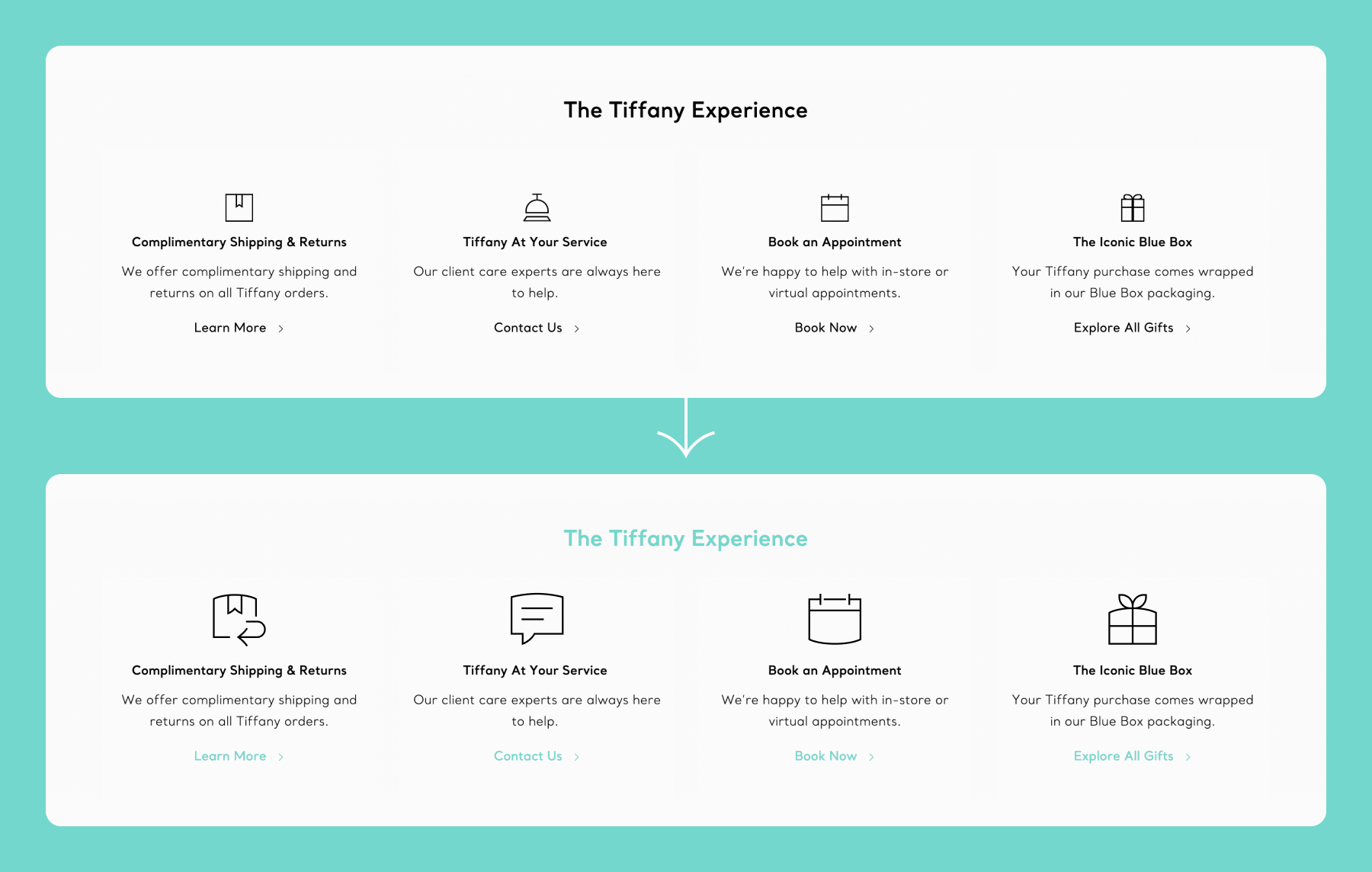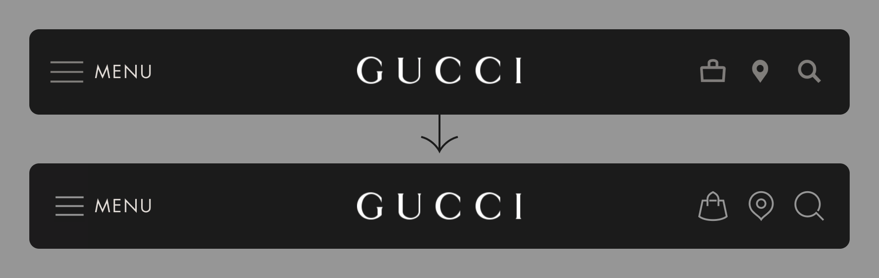 Sometimes it's even better to test the icons with well-established brands and compare. In the following unsolicited redesigns for Gucci, Fabergé, Dior and Tiffany's we can clearly see how 'Platinum' icons help create a more coherent, elegant and even legible visual language.