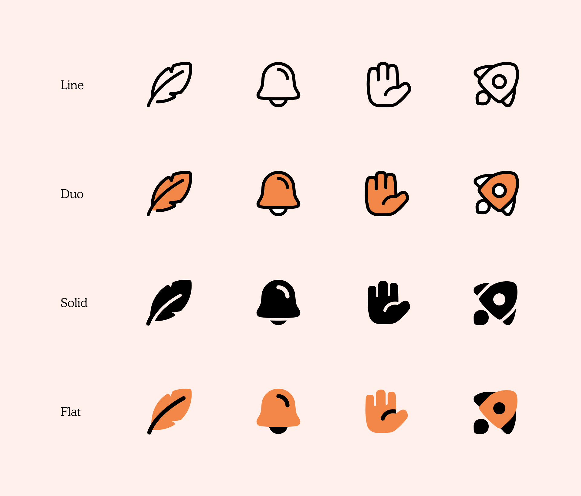 Like the other sets that are part of our Icon System (Core, Flex and Sharp), Plump icons come in four different styles. Line and Solid are especially suitable for designs where you need to use a unique set of icons but don't want to steal the interest from other elements. Duo and Flat are really useful if you want to illustrate specific features or characteristics and allow your users to understand them with a simple and quick glance at these icons.