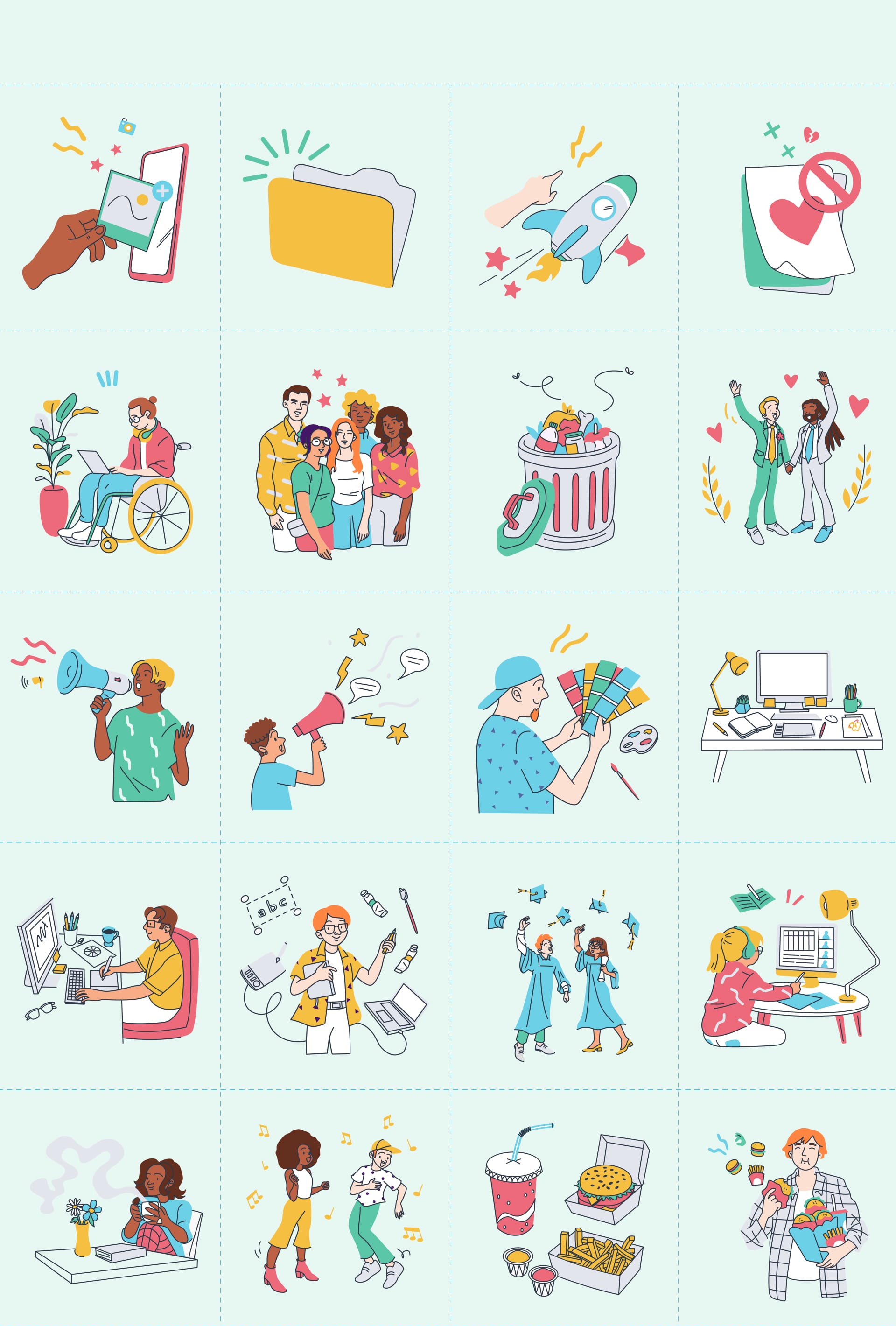 Our design team has meticulously crafted the world's largest illustrations library. Wondering where to begin? Here are our top recommendations.