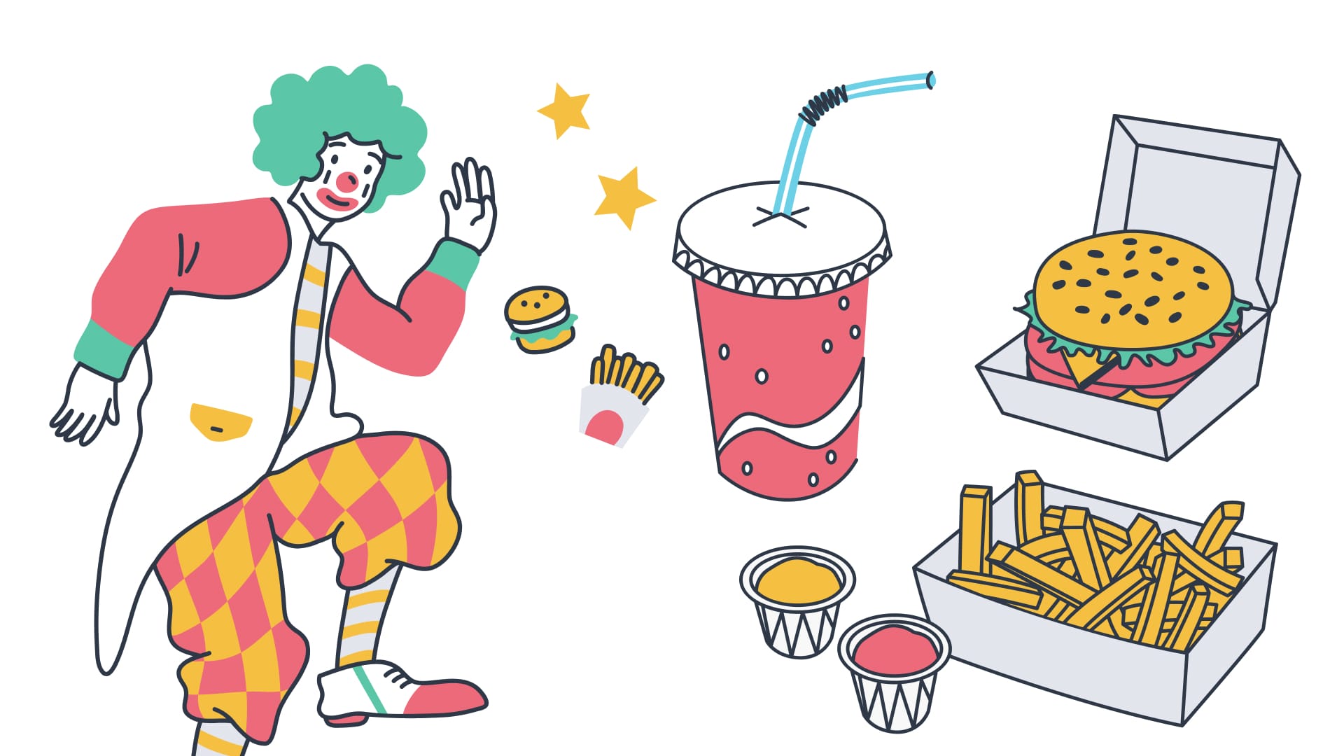 A creative style full of energy, fun, and colors. The shapes are almost abstract and the colors are bright and playful. It's a visual celebration that captures the essence of fun and excitement, inviting viewers to experience a burst of creativity and joy!